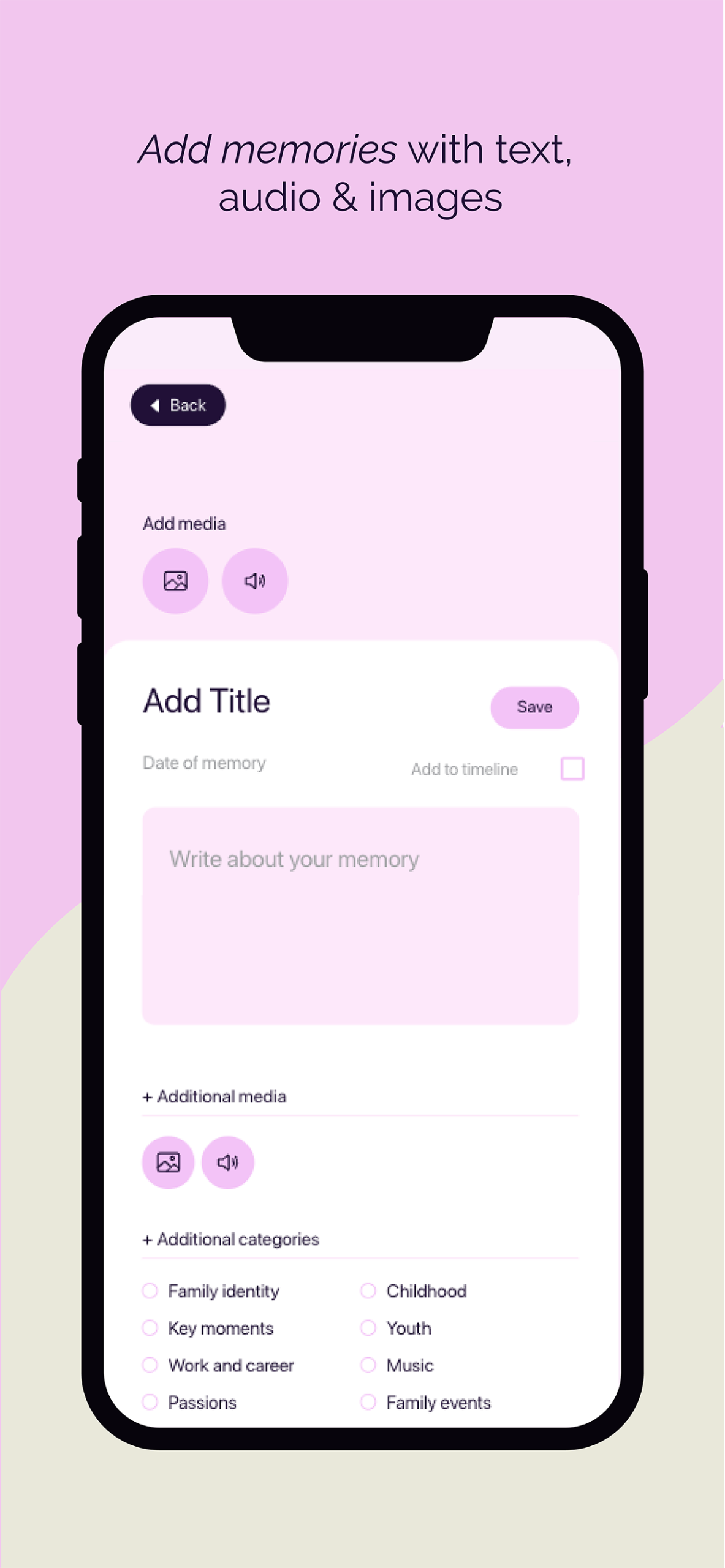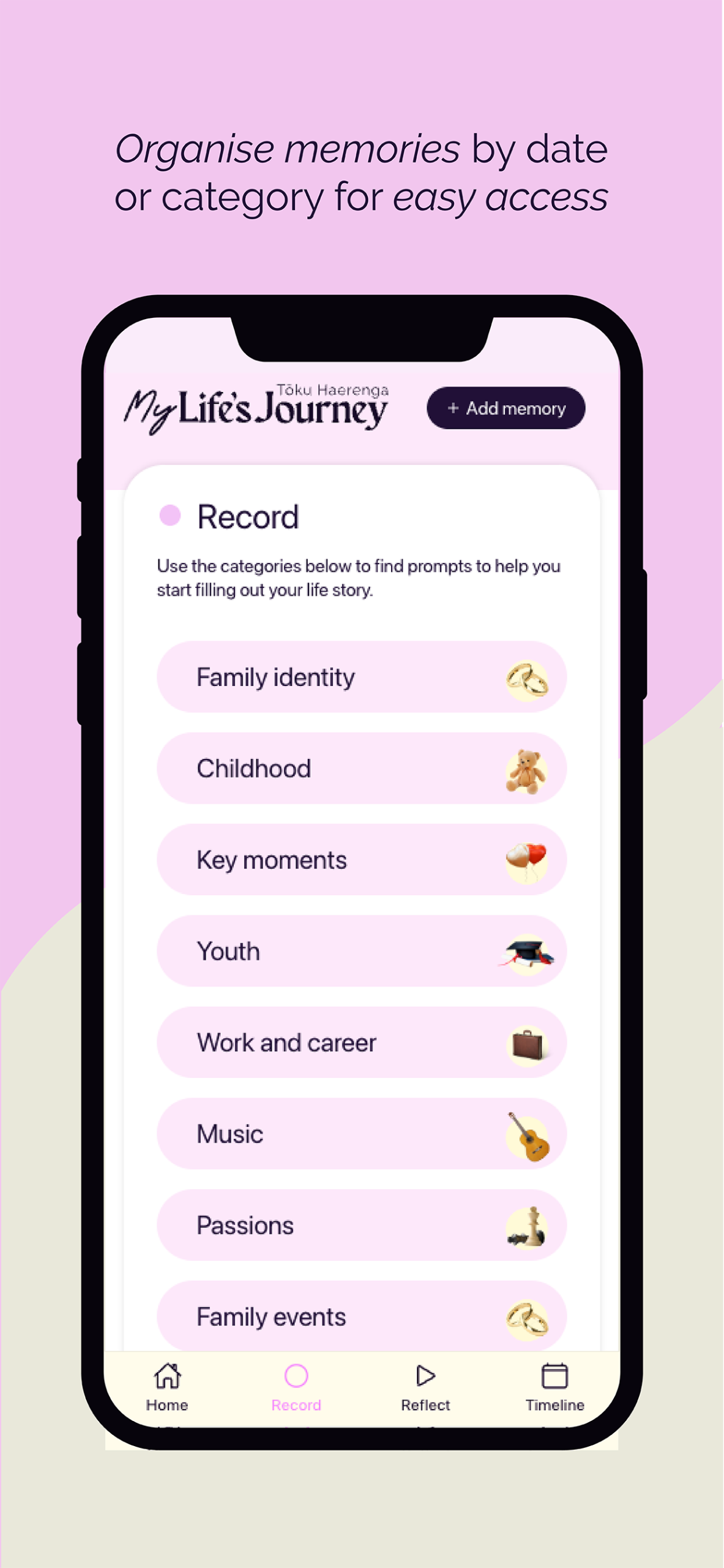 My Life’s Journey is an app which encourages people to record things that matter most to them, and that shape who they are – as a way of preserving a sense of self and leaving a legacy once they are gone.